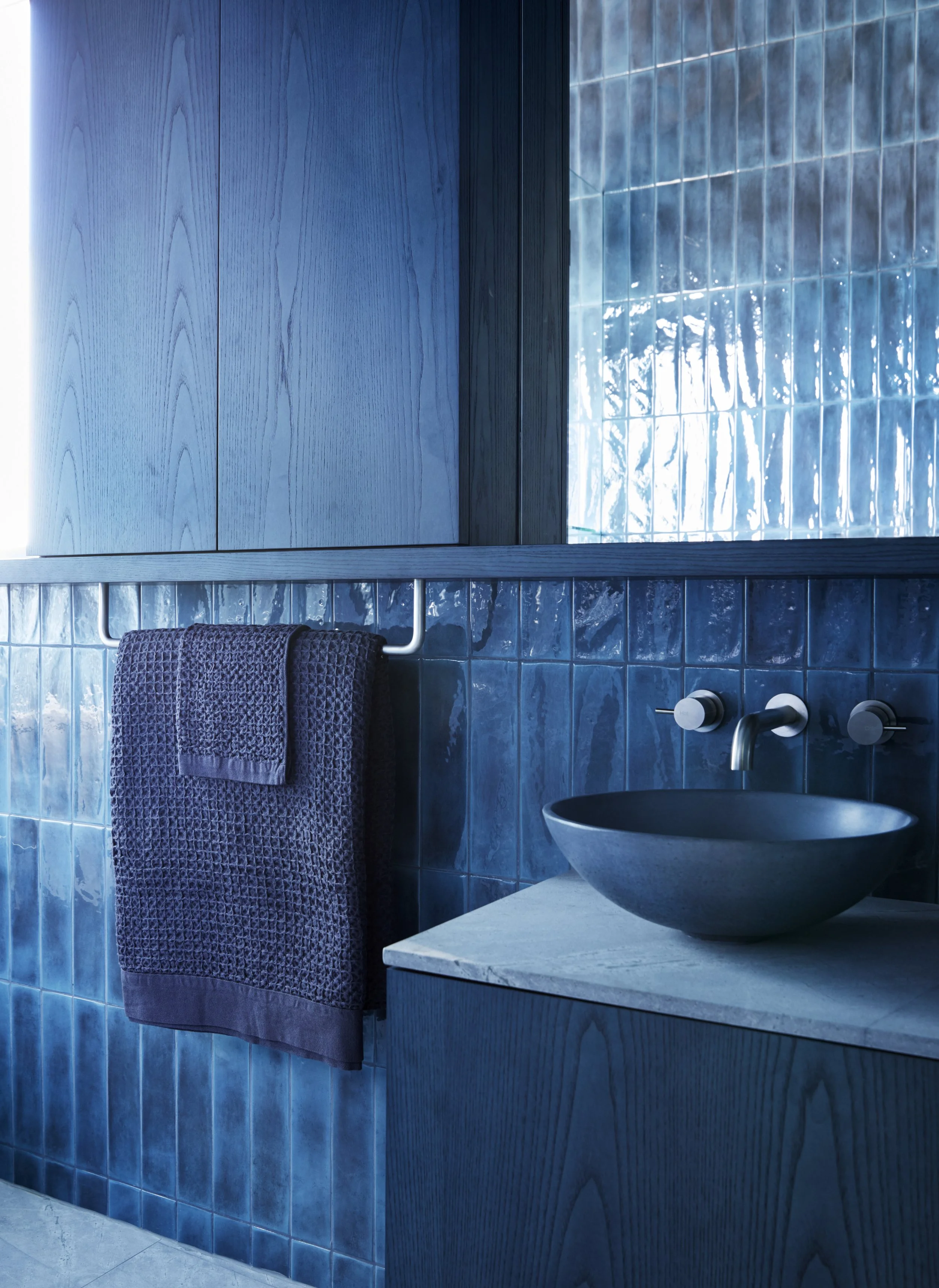 The only aesthetic request from our client was that the house had to have blue in it; drawing the vivid blues of the ocean, already visible beyond, into the space.