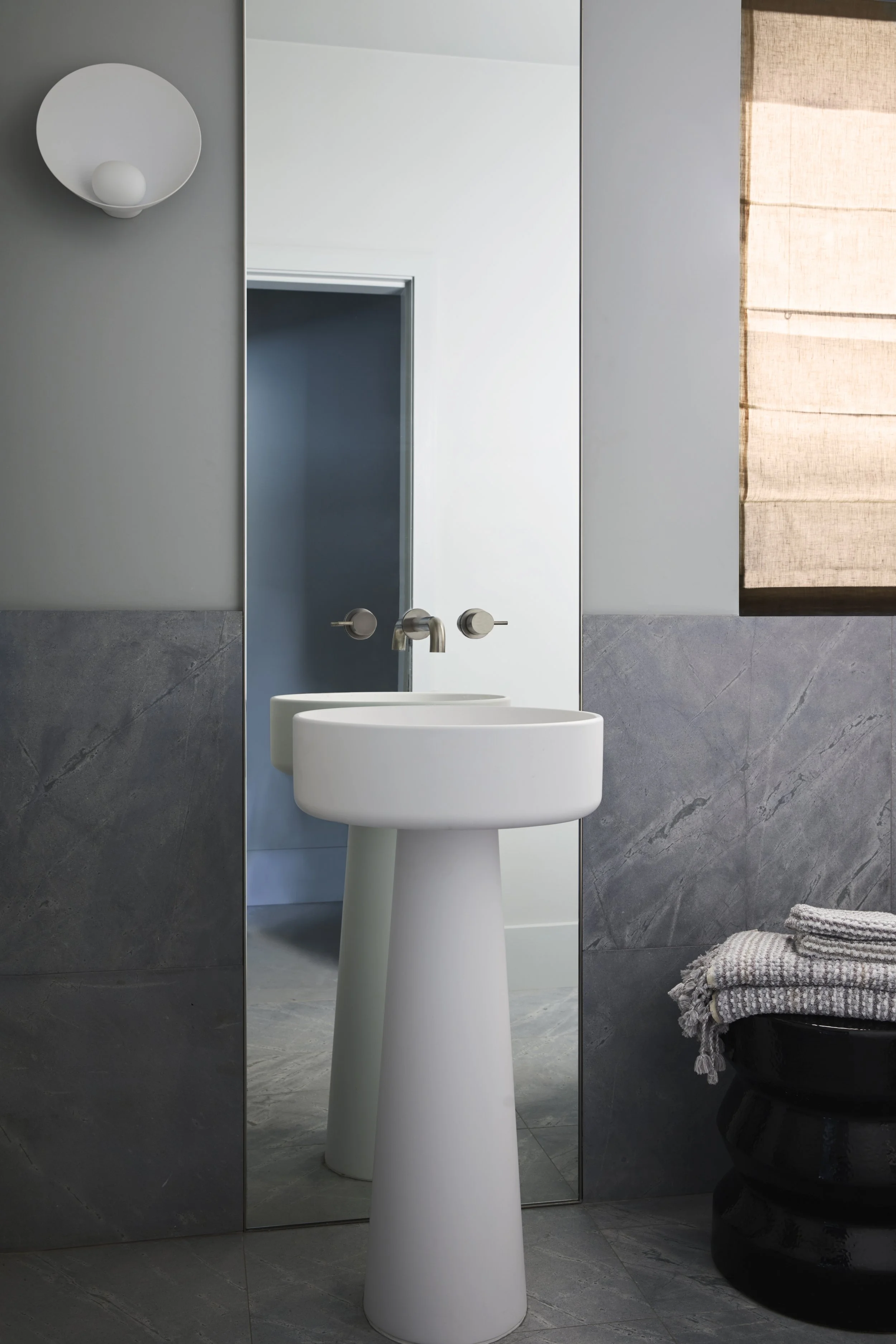 A subtle palette of timber, stone and linen; influenced by the restrained rigour of Japanese design and paying tribute to the Australian landscape through the use of native and locally sourced materials, including sandstone from Central NSW, Blackbutt from Southeastern Australia, and ‘Blue Crystal’ marble indigenous to Far North Queensland.